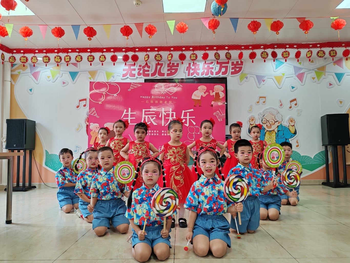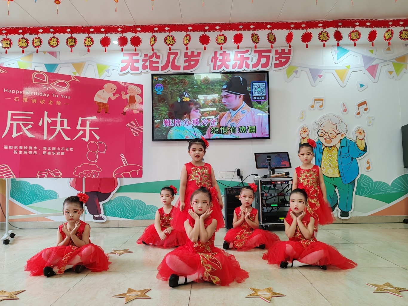 嘉明幼儿园小朋友们带来了精彩多样的节目。红歌《红星闪闪》旋律激昂,孩子们演唱得铿锵有力;粤语儿歌《爸爸最锡我》软糯动听,满是童真;律动《何家公鸡何家猜》中,小朋友们跟着节奏蹦跳,动作可爱。精彩表演赢得老人阵阵掌声,现场氛围热烈。