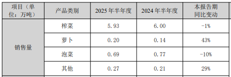 公司核心产品榨菜销量自2022年起已连续三年呈现下滑态势,2025年上半年同比下滑1%。涪陵榨菜此前曾分析,当前榨菜市场竞争已步入存量阶段。由于涪陵榨菜所处的行业准入门槛较低,行业竞争激烈,公司在巩固榨菜基本盘的同时,近年也在谋求向高增长品类突围。